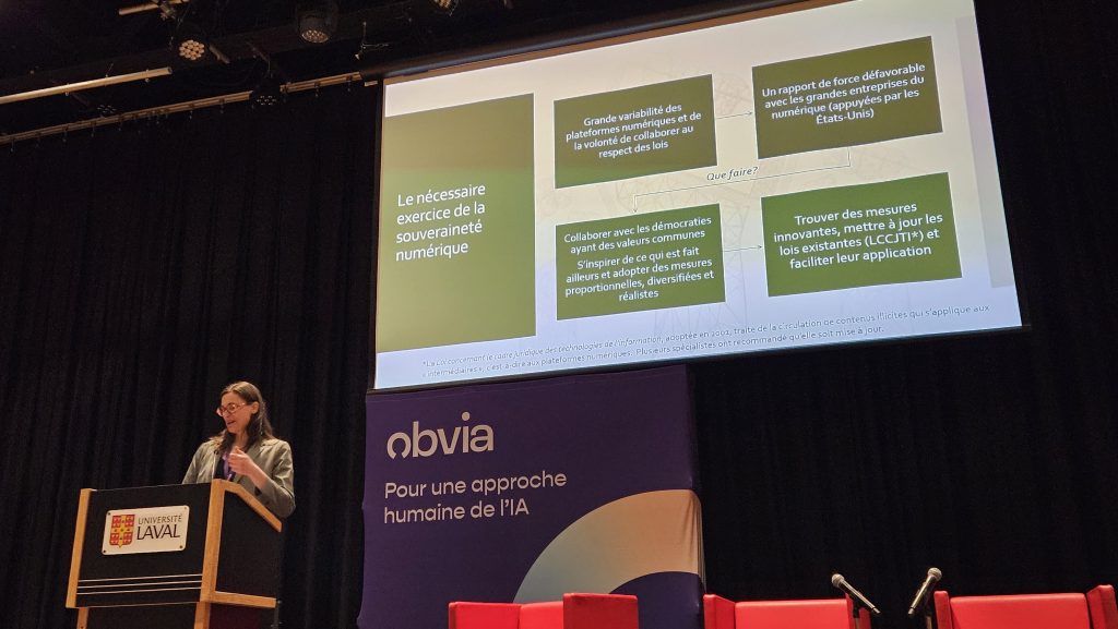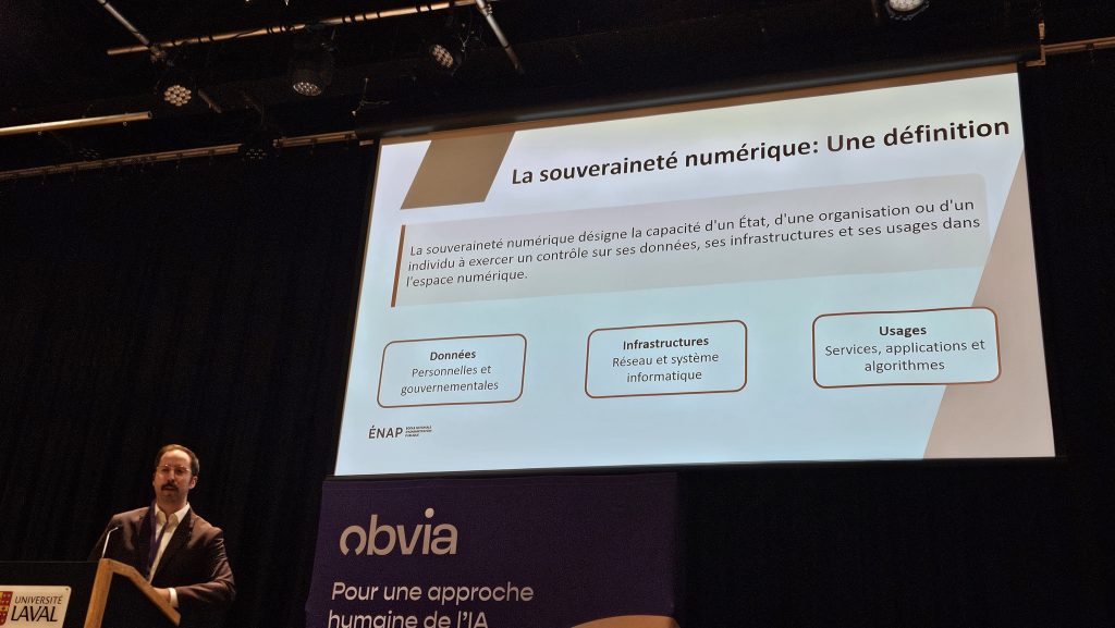 Le dernier colloque de l’Observatoire international sur les impacts sociétaux de l’IA et du numérique (OBVIA) avait comme thématique La souveraineté numérique au Québec : concilier stratégie, éthique et intérêt public. Un sujet que je développe depuis 2022 à travers mes intérêts de recherche sur l’appropriation sociales des innovations technologique dans un contexte géopolitique d’un Québec pays.