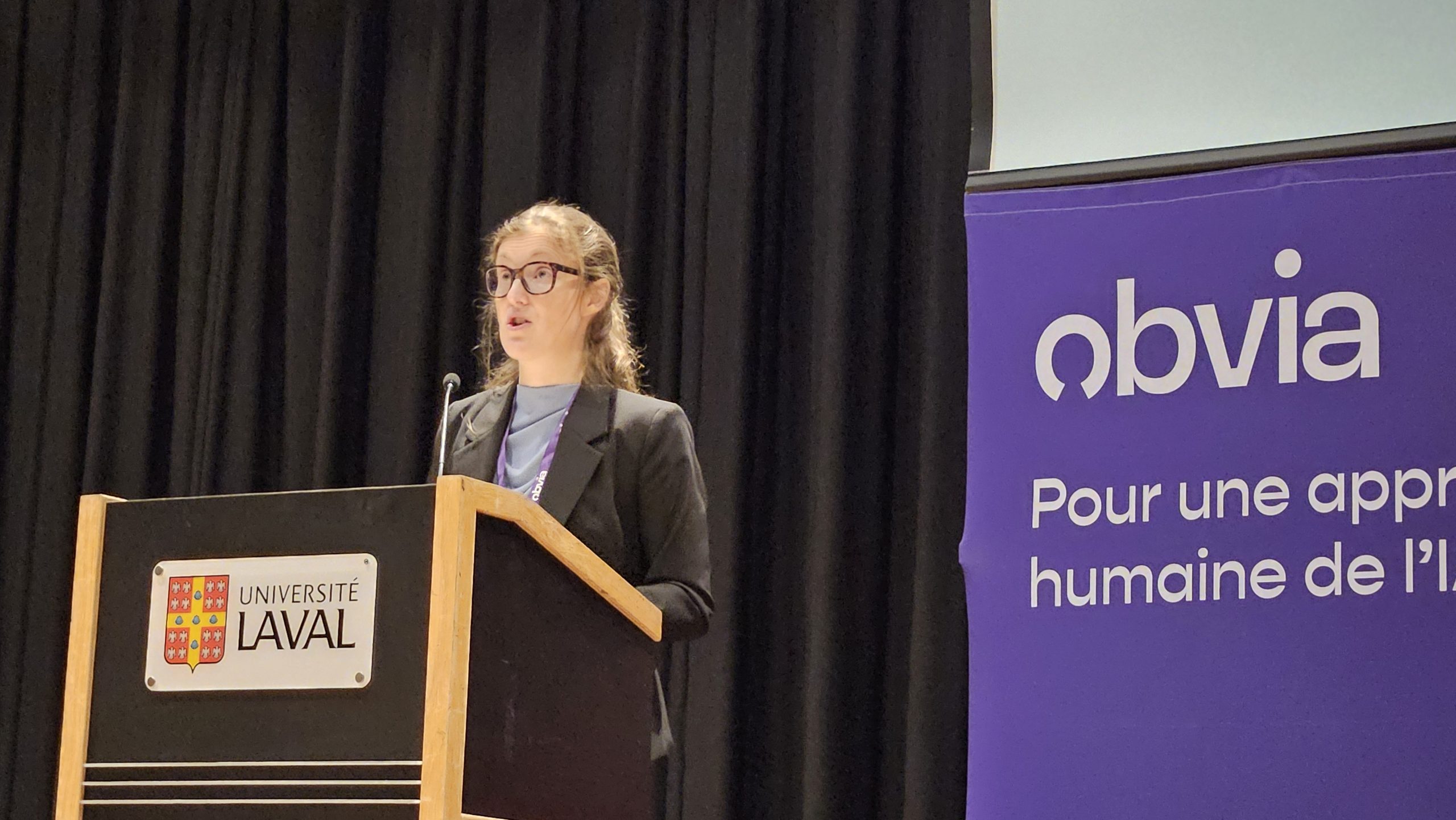 Un des partenaires présents était la Commission de l’éthique en science et en technologie du Québec qui ont un rôle majeur depuis plusieurs années. Malgré une petite équipe, ils travaillent sans relâche pour conseiller les décideurs publics québécois et contribuer à la réflexion sur les enjeux éthiques associés aux développements scientifiques et technologiques. En 2024, ils ont publié avec le Conseil supérieur de l’éducation le rapport Intelligence artificielle générative en enseignement supérieur : enjeux pédagogiques et éthiques.